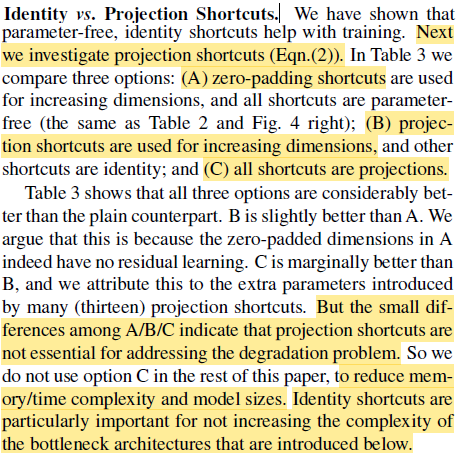 Identity vs Projection Shortcuts