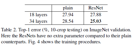 - plain net에 비해 성능이 좋다. (plain vs res)