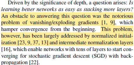 첫 번째로는 Vanishing/Explodinf gradients 현상이 있다. 하지만 이 문제는 normalization을 통해 해결할 수 있었다.