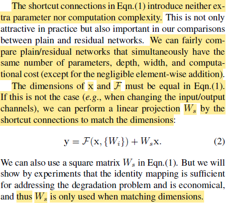 3.2 Identity Mapping by Shortcuts