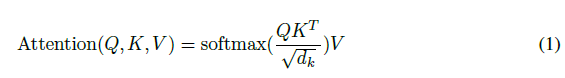 가장 많이 사용되는 attention 방식 중에 하나인 dot product attention의 변형이다. 일반적인 것과 다른 점은 Q, K의 dimension인 sqrt(d_k)로 나누어 scaling을 한다는 점이다. d_k가 커짐에 따라 내적값이 커져 softmax의 양끝으로 이동하고 gradient가 0에 수렴하는 현상을 방지하기 위함이다.