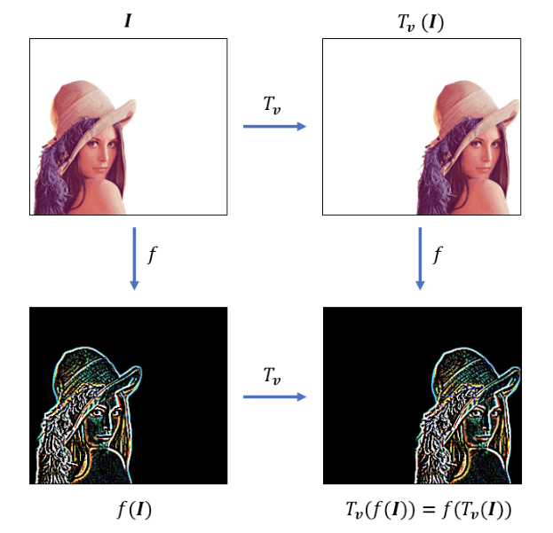 translation equivariance는 input의 translation이 output에도 그대로 영향을 미친다는 의미이다. translation 후 처리를 하나, 처리를 하고 translation을 하나 결과가 같다고 할 수 있다.