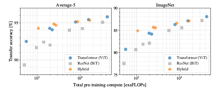 특히, 대용량의 dataset으로 pre-train한 뒤 상대적으로 작은 dataset(ImageNet, CIFAR, VTAB 등)으로 transfer(fine-tunning) 했을 때 적은 계산량을 요구함과 동시에 성능이 좋았다.