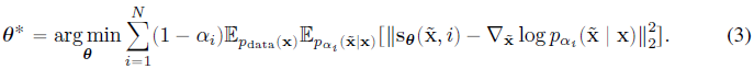 SDE의 score를 학습하기 위한 objective ((1), (3) 식의 일반화된 버전)