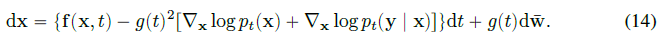 지금까지 얘기한 p0(x0)에서 data를 sampling하는 것을 얘기했다. 더 나아가서 p_t(y | x(t))를 알 수 있다면 학습된 모델을 가지고 p0(x(0) | y)같이 y라는 condition을 준 상태로도 sampling을 할 수 있다.
