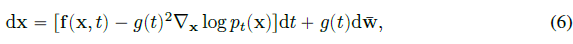 Diffusion process x(t)의 reverse 역시 diffusion process이고 그 reverse diffusion process는 아래의 reverse SDE의 solution이라는 것이 밝혀져 있다.