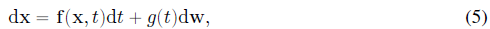 여기에서 N이 무한대로 가면, x_i는 continuous stochastic(diffusion) process가 되고 아래의 SDE의 solution이 된다.